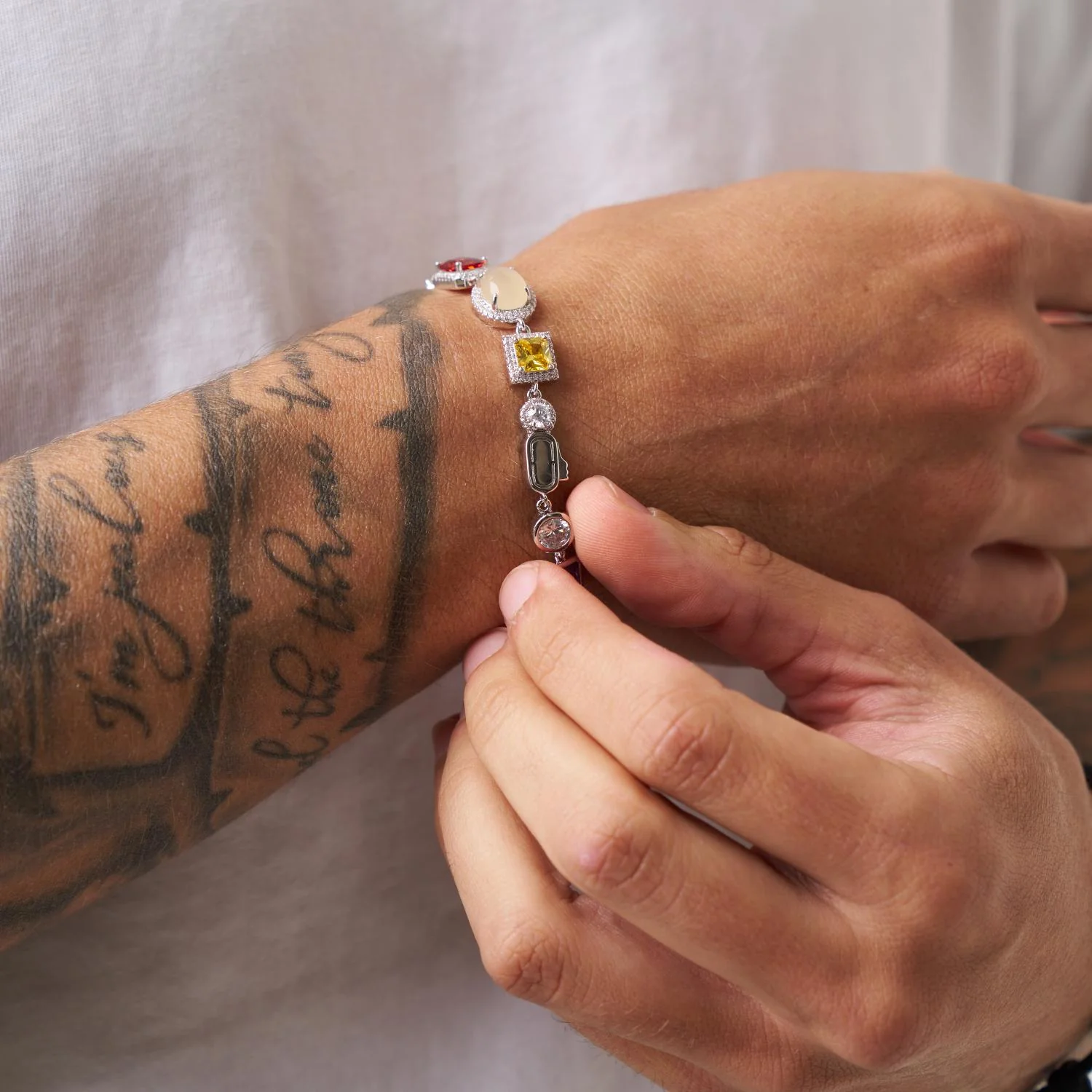 This Gemstone bracelet features rich hues of ruby, amethyst, amber, and emerald, each handset in a bezel or four-claw frame. Larger, round-cut opals bring balance to the design, while silver and pavé-set AAA stones elevate every detail. Coupled links ensure a seamless fit around the wrist, while our snap-proof clasp and scratch-resistant protection make this a piece that’s truly CRAFTD to last.