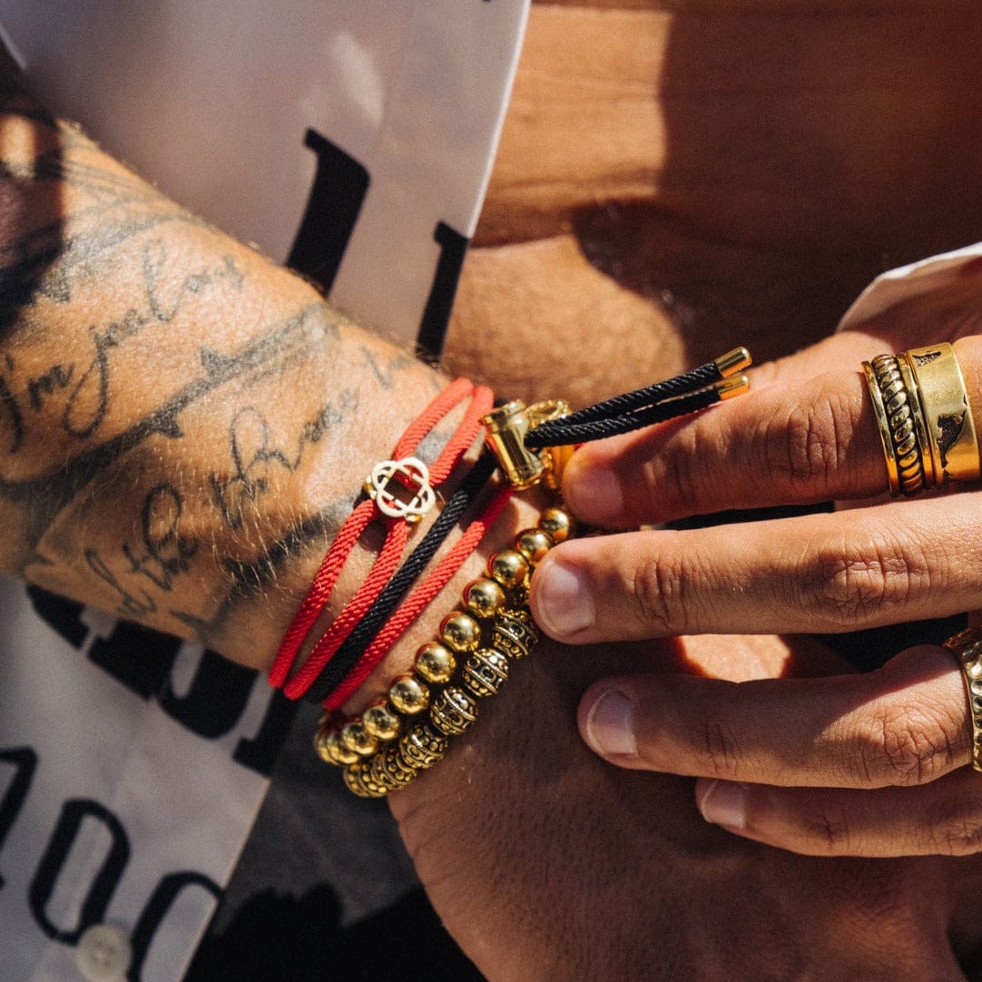 Handwoven from tightly braided red cord and finished with silver clover detailing, this bracelet brings subtle contrast to your stack. Its adjustable sliding knots deliver a tailored fit, sitting comfortably on the wrist whether worn solo or layered with your favourite silver pieces. Designed for daily wear and finished with our signature scratch-resistant protection, it’s CRAFTD to last a lifetime.